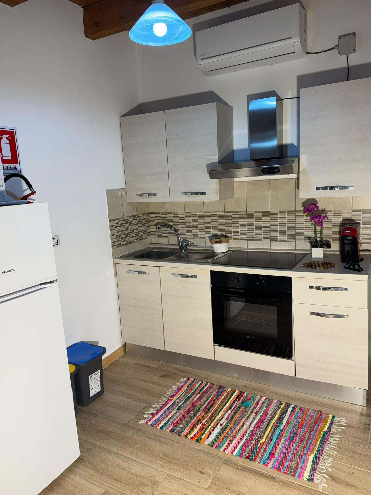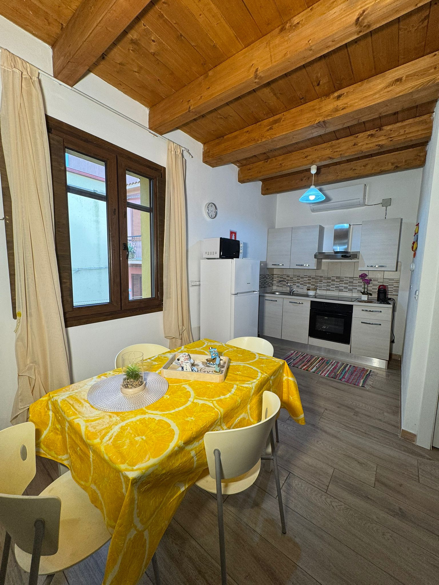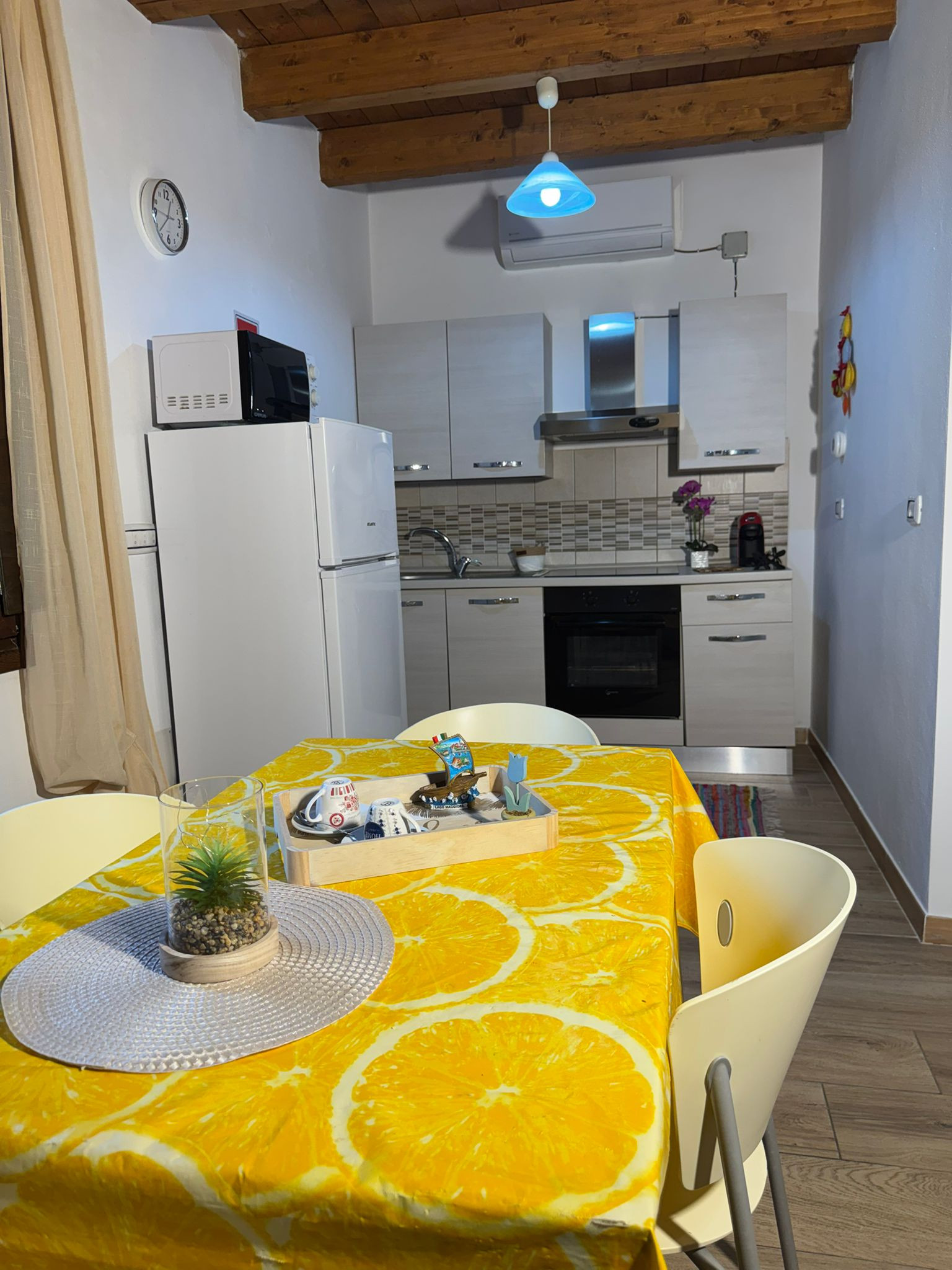 L'appartamento dispone di due camere da letto accuratamente allestite: una camera con letto matrimoniale per i genitori o la coppia di amici, una cameretta con letto a castello per i più giovani e un ulteriore letto singolo. La casa è dotata di tutti i comfort moderni, tra cui aria condizionata e pompa di calore per mantenere un ambiente sempre piacevole.