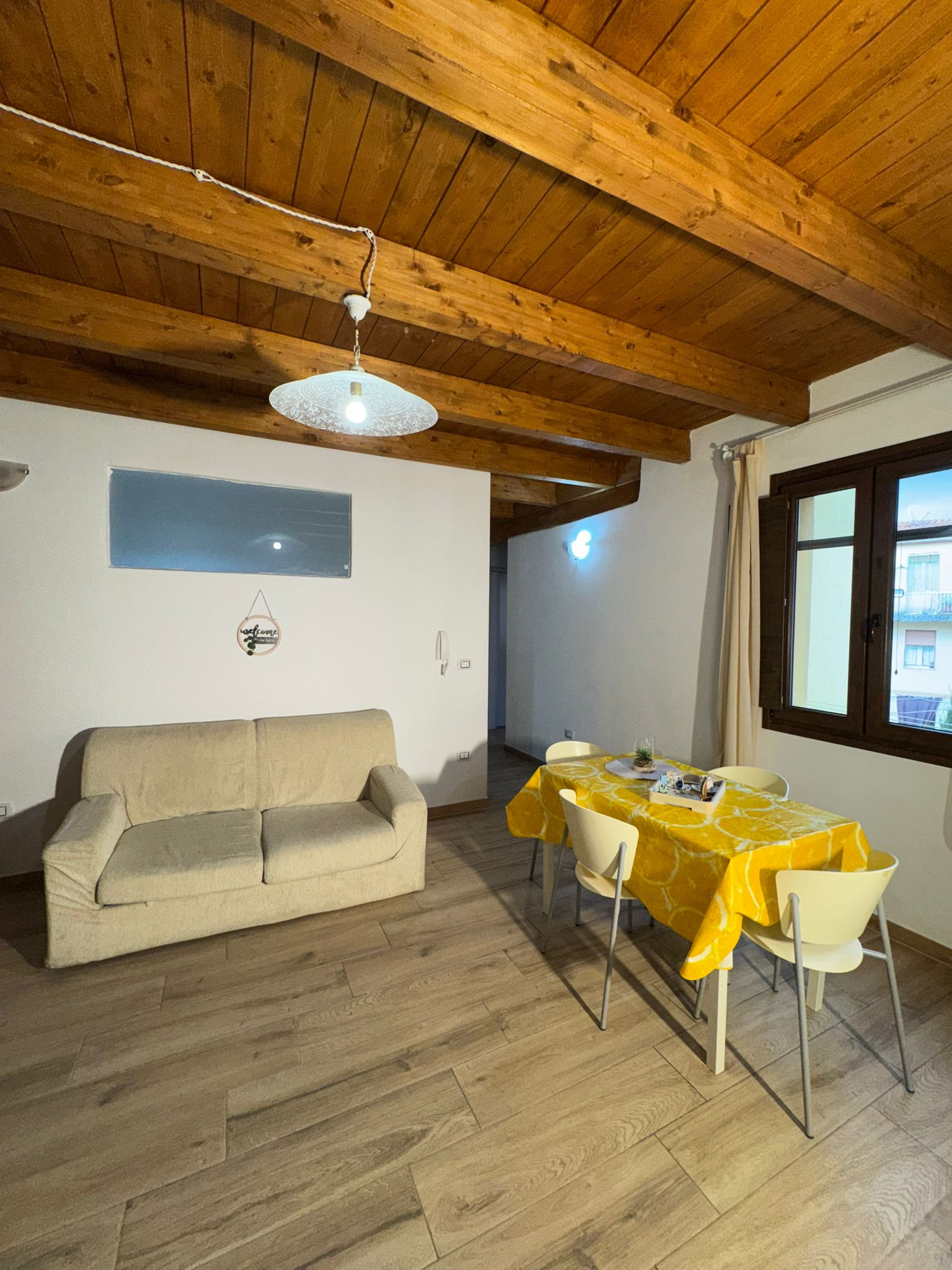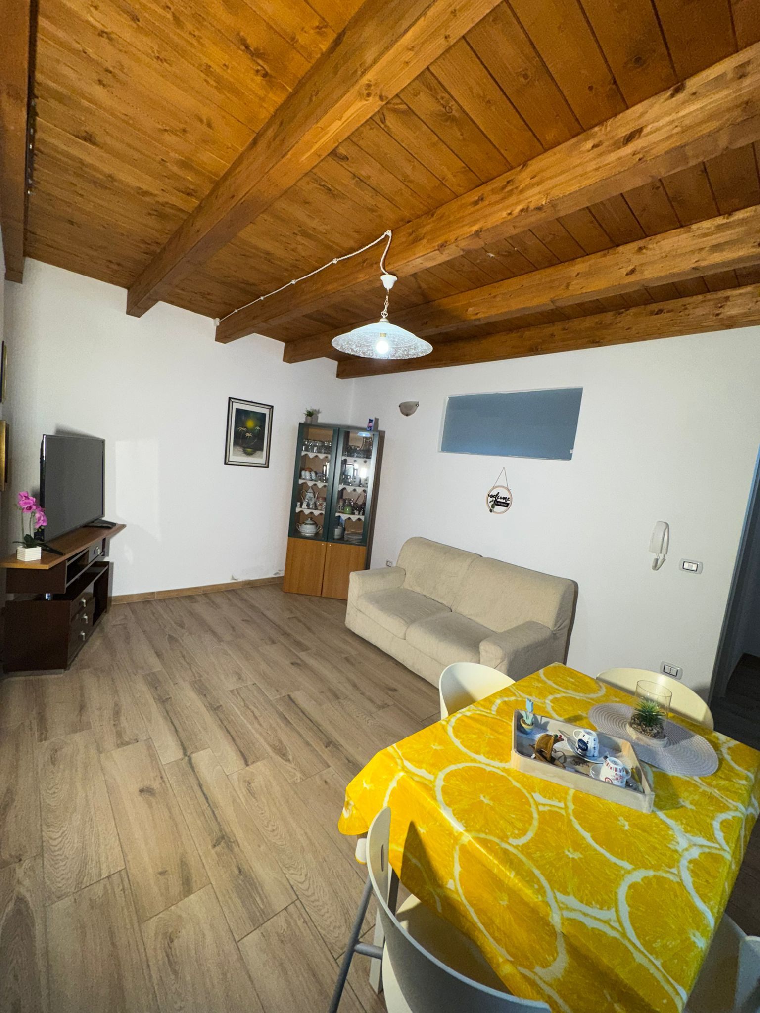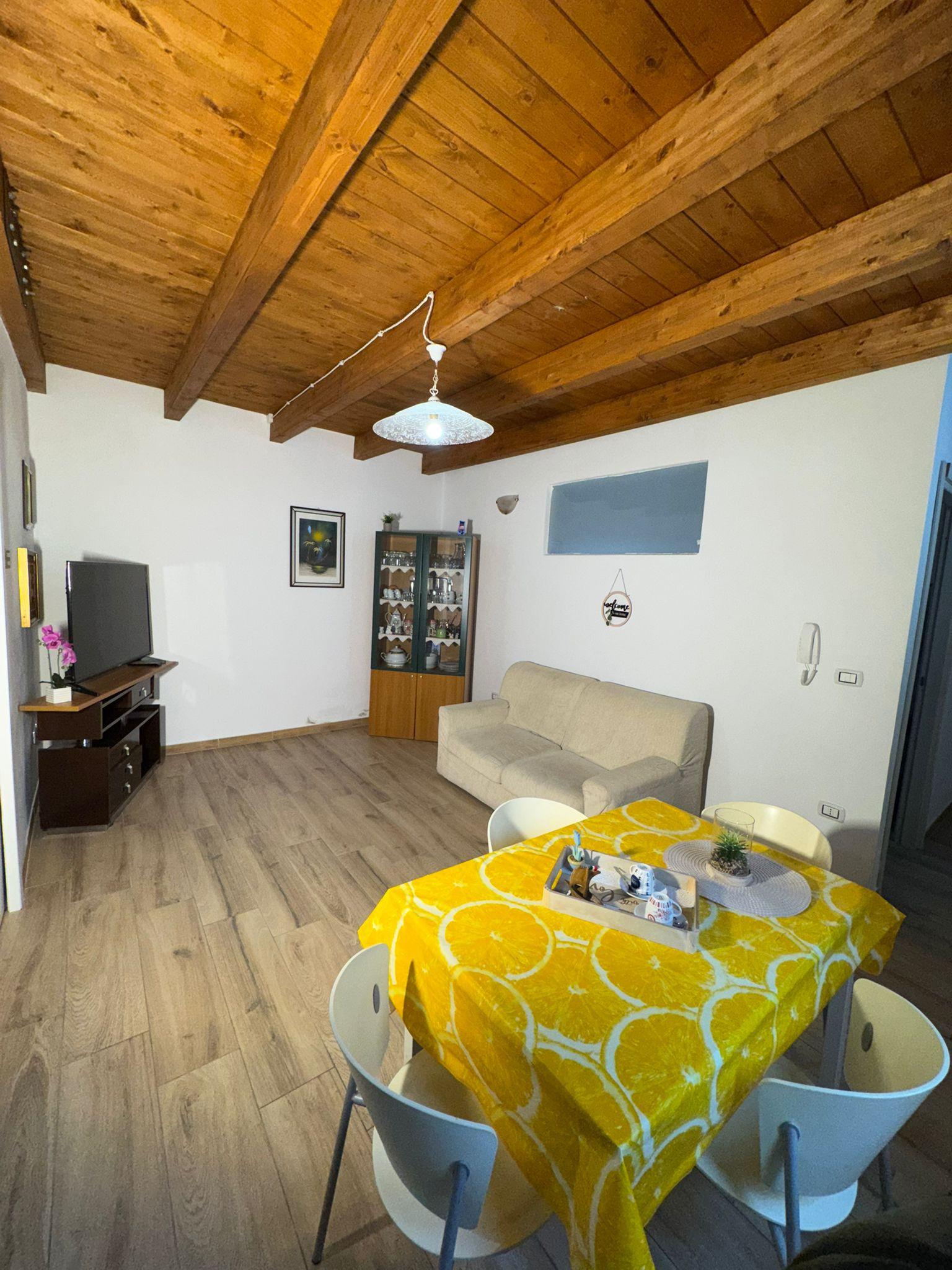 L'appartamento dispone di due camere da letto accuratamente allestite: una camera con letto matrimoniale per i genitori o la coppia di amici, una cameretta con letto a castello per i più giovani e un ulteriore letto singolo. La casa è dotata di tutti i comfort moderni, tra cui aria condizionata e pompa di calore per mantenere un ambiente sempre piacevole.