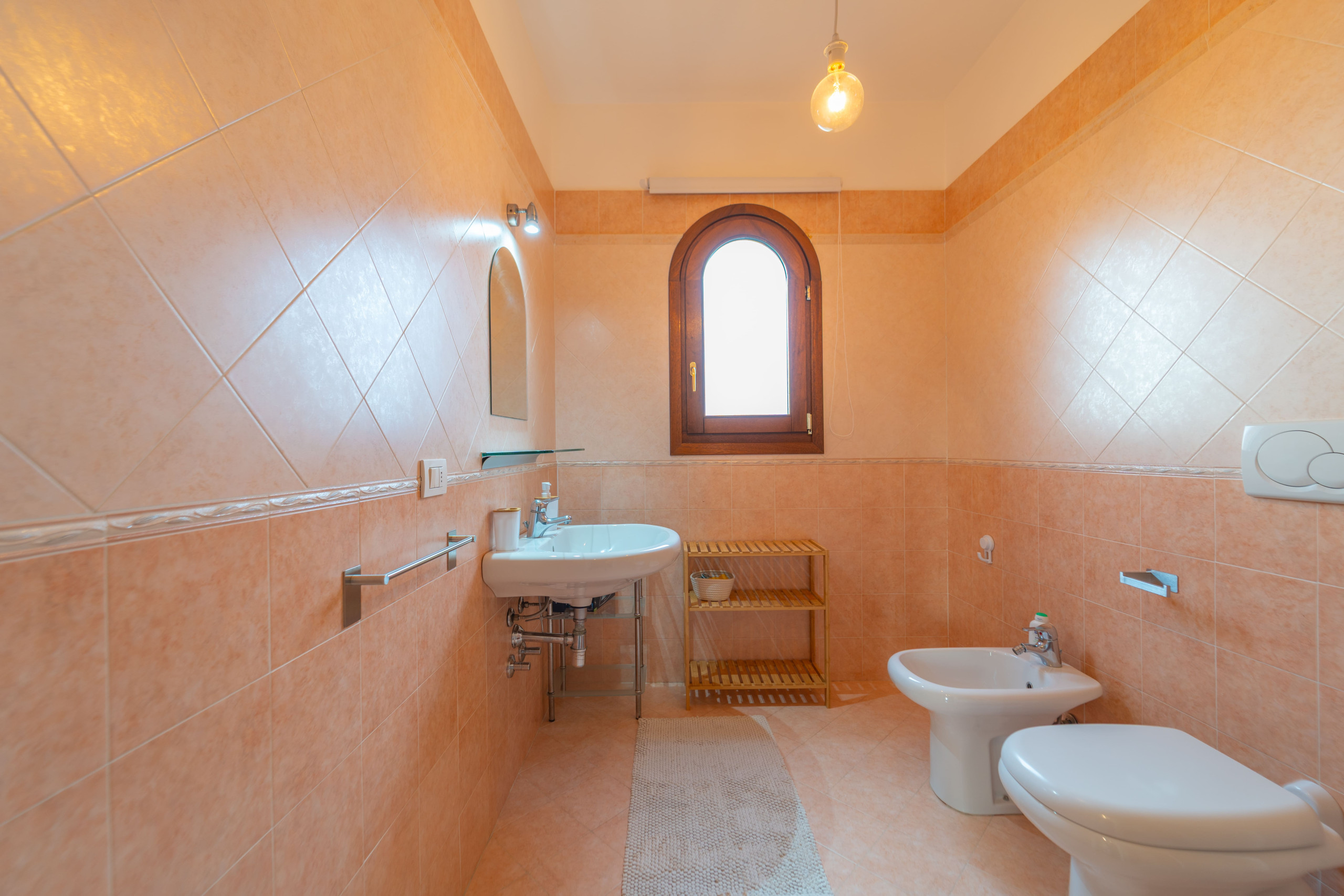 The functional kitchen, complete with everything necessary for cooking, allows you to enjoy your holiday with maximum freedom, perhaps preparing typical Sardinian dishes to savour in total tranquillity. The spacious, modern bathroom, equipped with all sanitary facilities, ensures comfort and practicality at every moment of your stay.