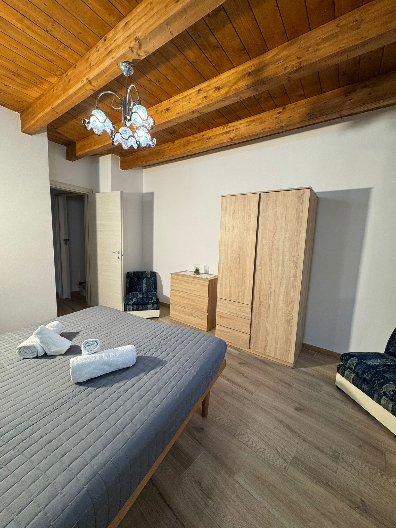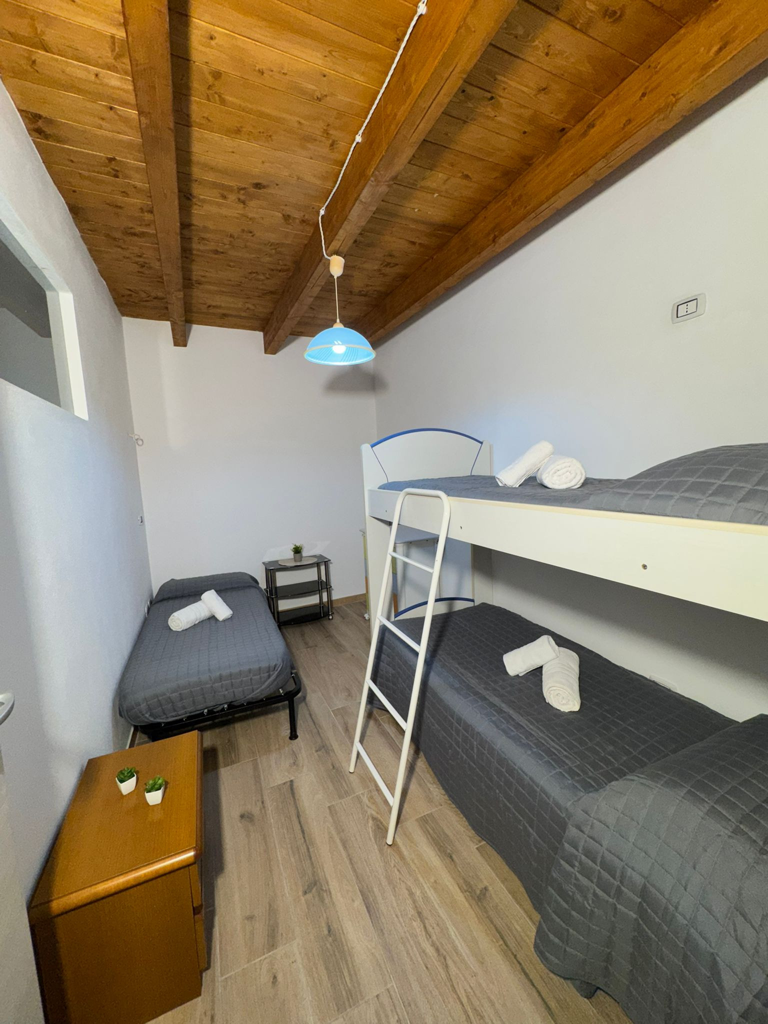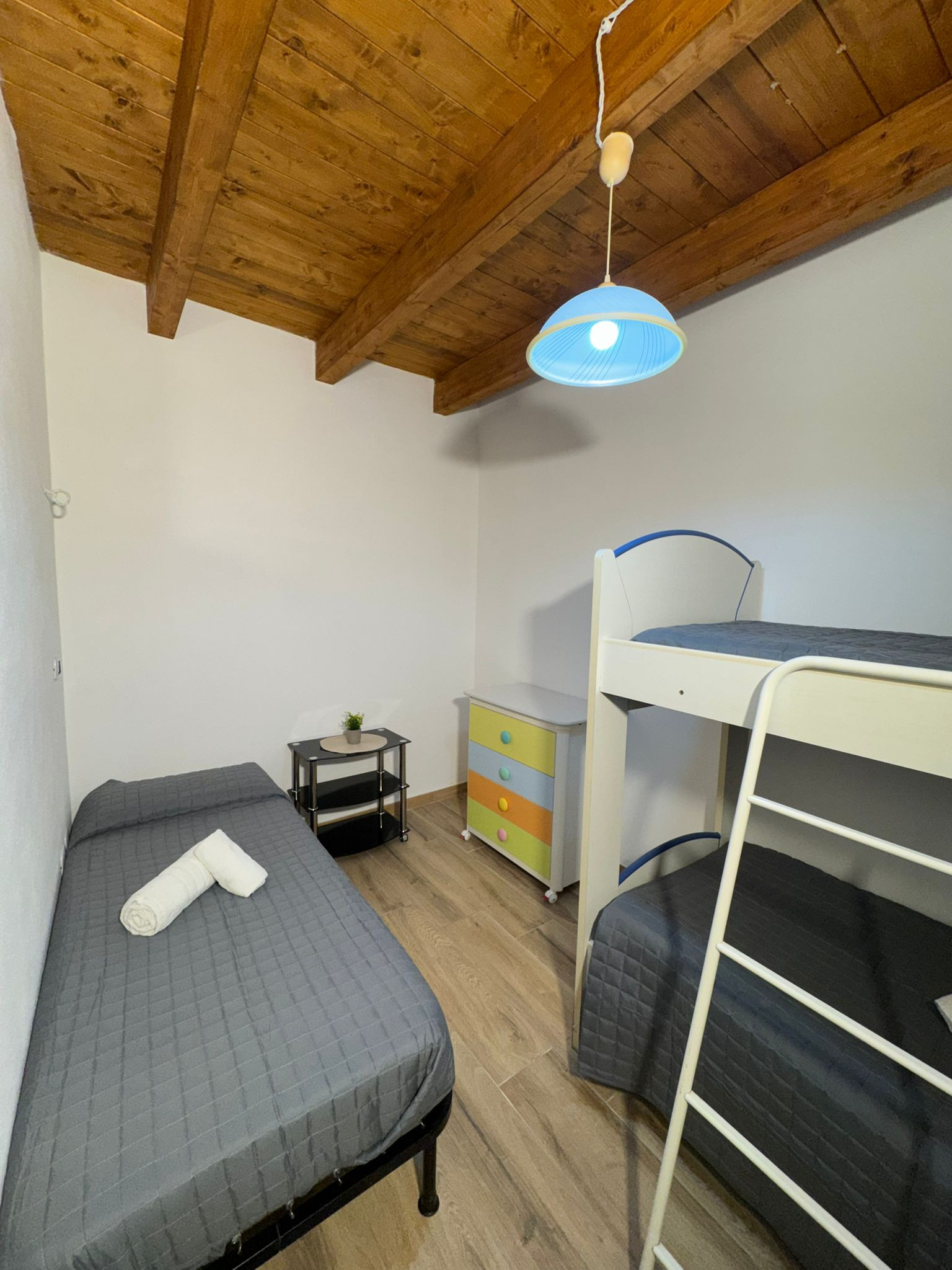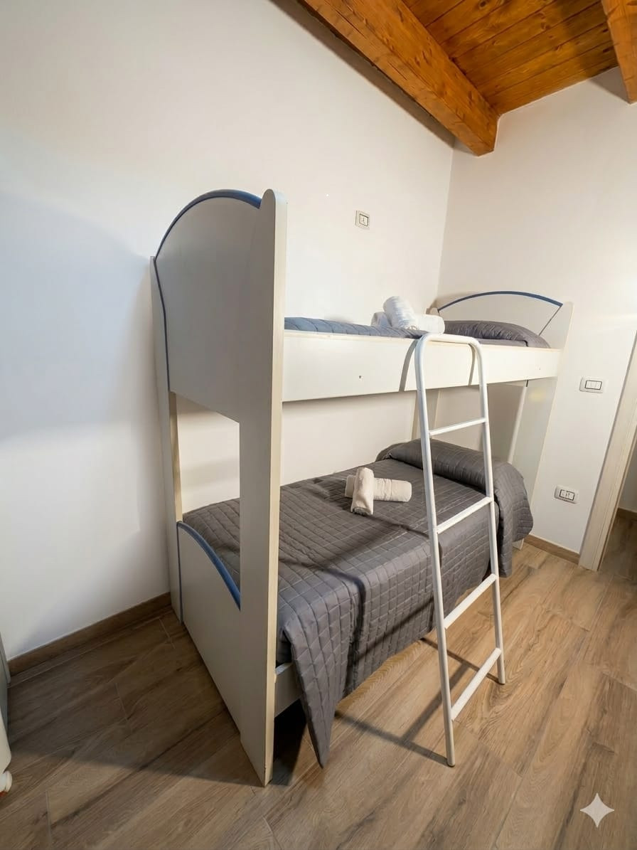 The apartment has two carefully furnished bedrooms: one room with a double bed for parents or a couple of friends, a small room with a bunk bed for younger guests and an additional single bed. The house is equipped with all modern comforts, including air conditioning and a heat pump to maintain a always pleasant environment.