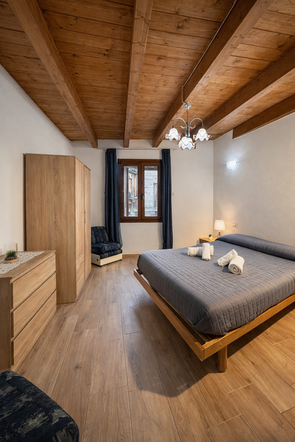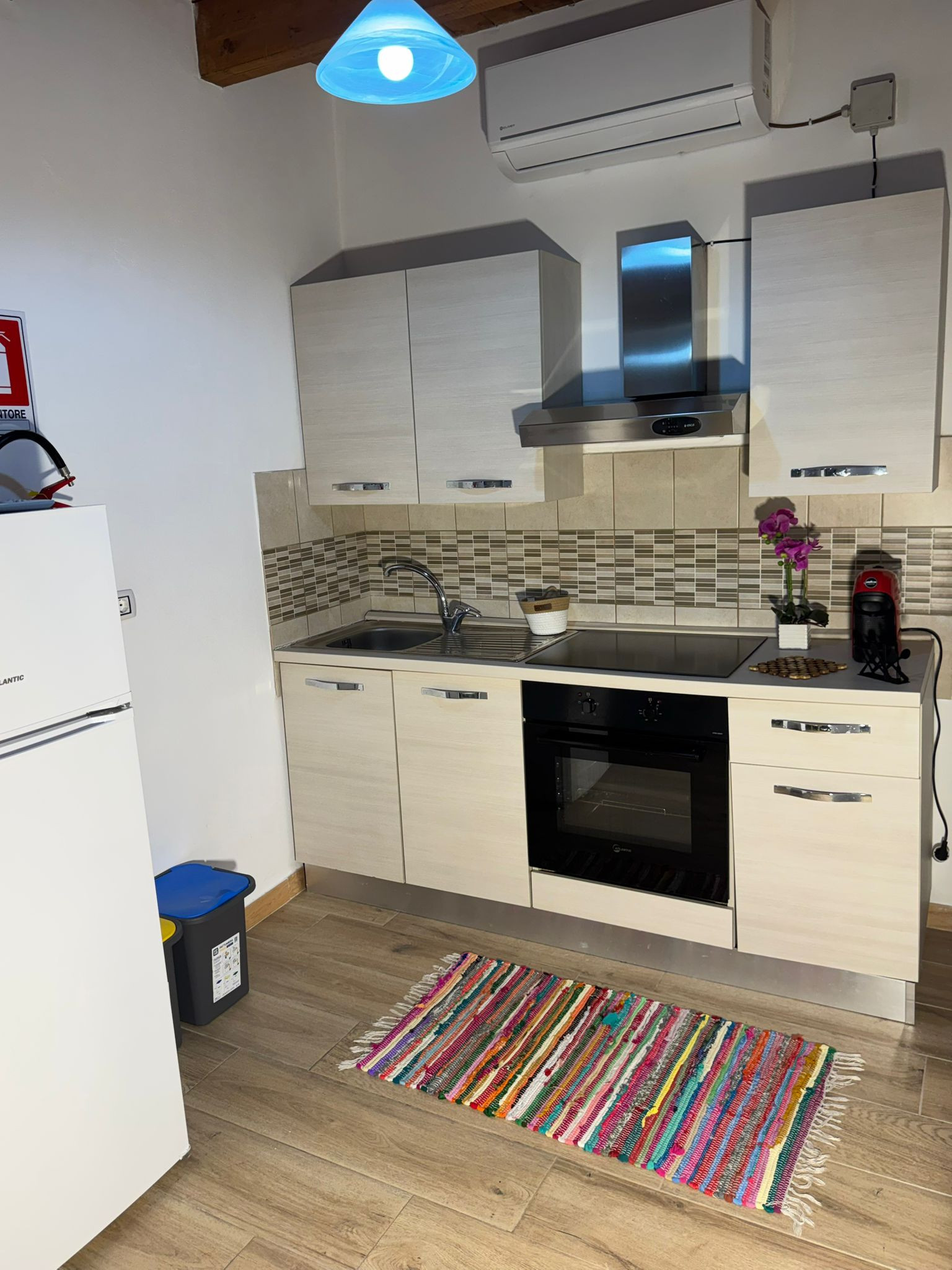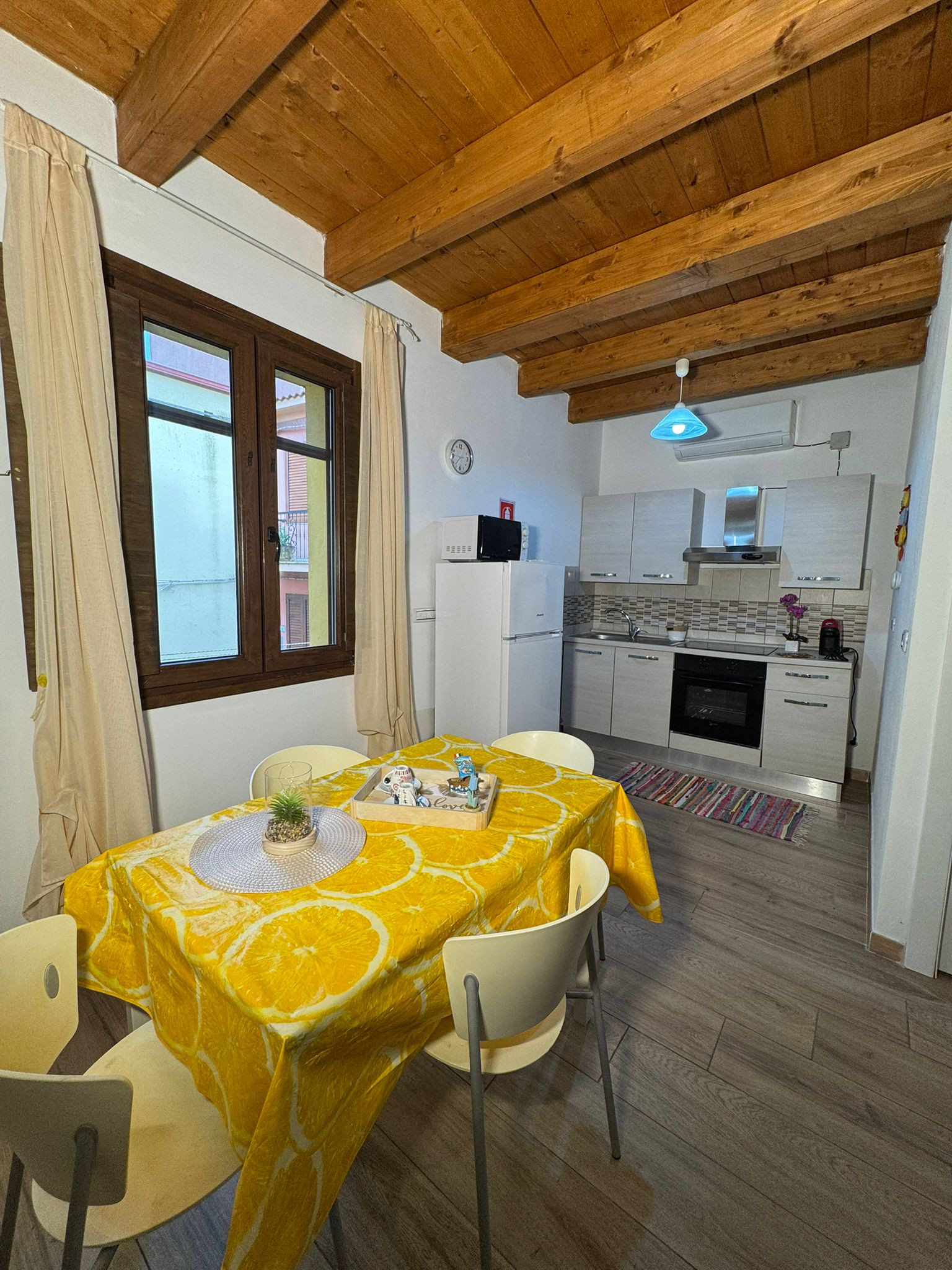 The apartment has two carefully furnished bedrooms: one room with a double bed for parents or a couple of friends, a small room with a bunk bed for younger guests and an additional single bed. The house is equipped with all modern comforts, including air conditioning and a heat pump to maintain a always pleasant environment.